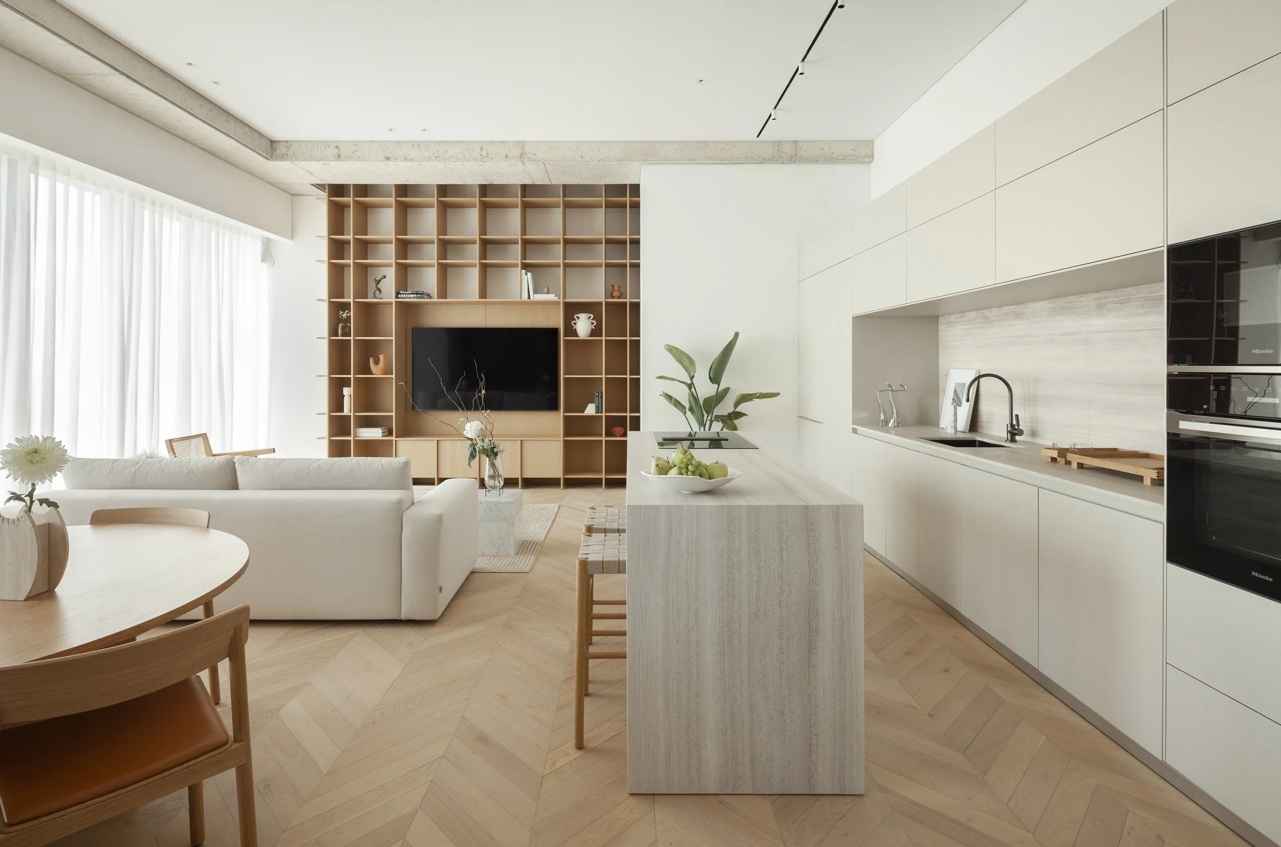 Aiming to create a timeless yet contemporary atmosphere, natural and classic materials were selected consistently, ranging on a warm and mellow spectrum. Clean lines and an almost monochromatic color palette, suggested defining each space by specific forms, scale, textures and details.