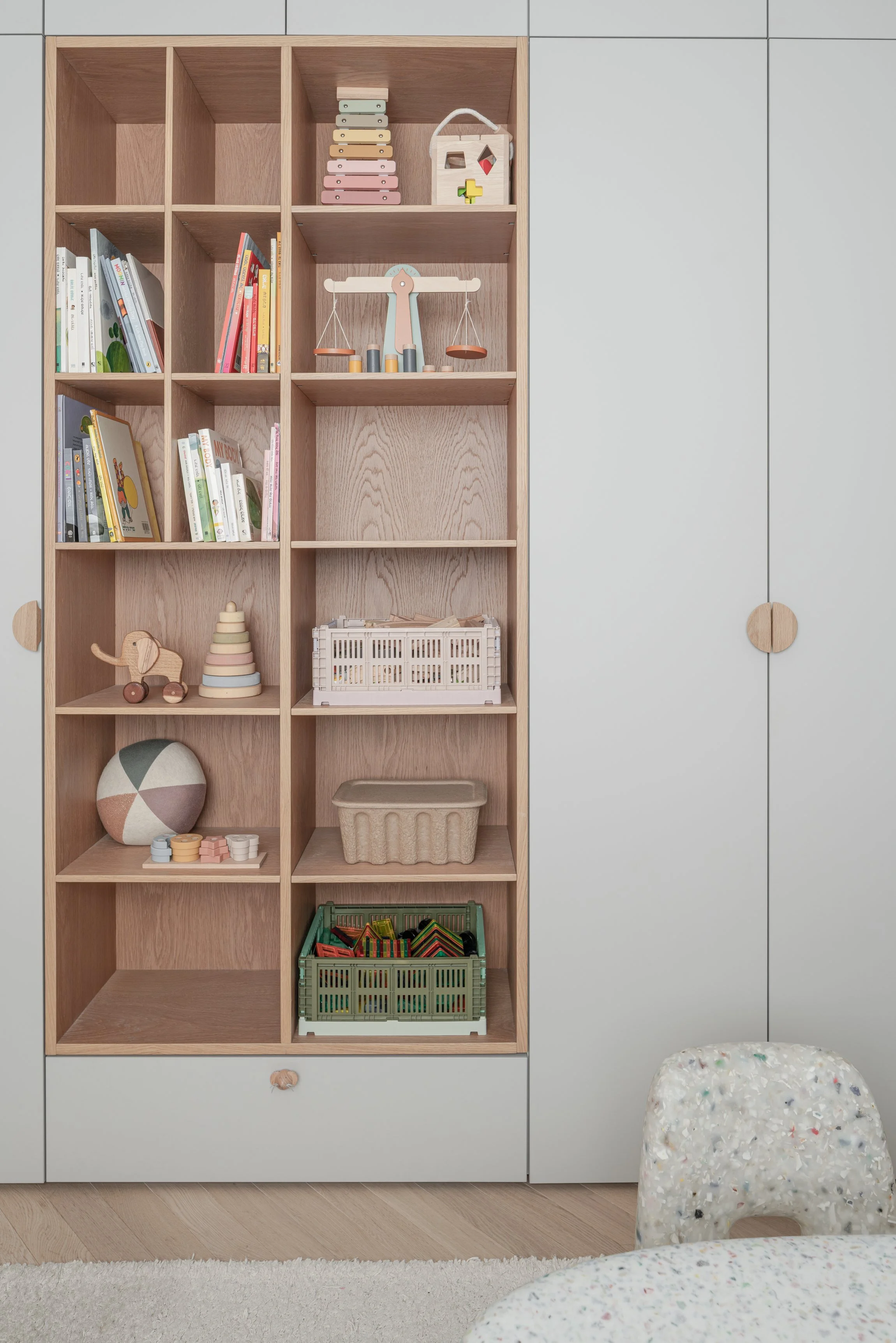 This marks my second project with this family, as our collaboration began with designing their first apartment in a nearby building several years ago, when they were a young couple. Now we reconnected for a new project, corresponding to the new chapter in their lives as a family with two daughters.